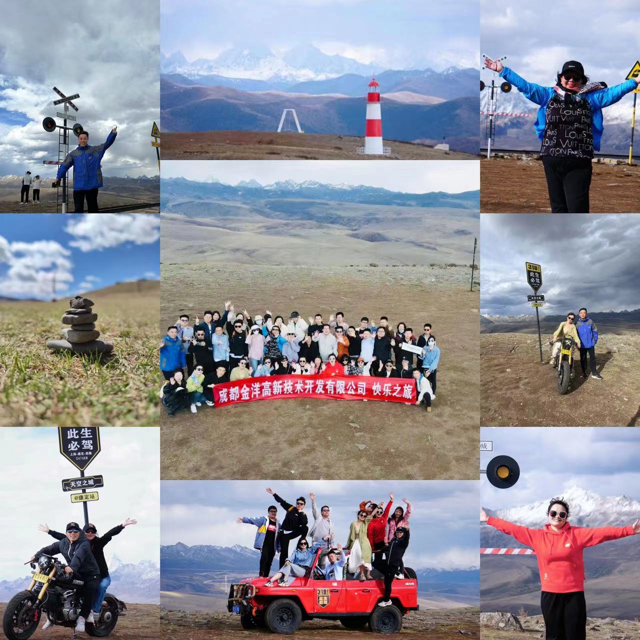 美好的地方从不让人轻易到达,我们由大巴换乘小汽车,颠簸近半小时的崎岖山路,到达“天空之城”格底拉姆。它是川西地区为数不多的高高海拔观景平台,地处海拔5884.3的半空中,可将贡嘎雪山、青绕雪山等美丽雪山群风光尽收眼底。红白的灯塔,垒起的玛尼堆,寄托着来自人们心中的祈愿。